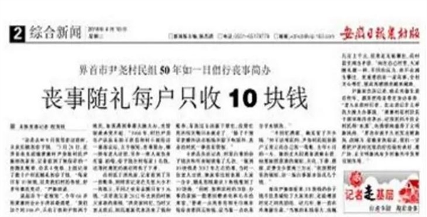 丧事随礼每户只收10块钱
